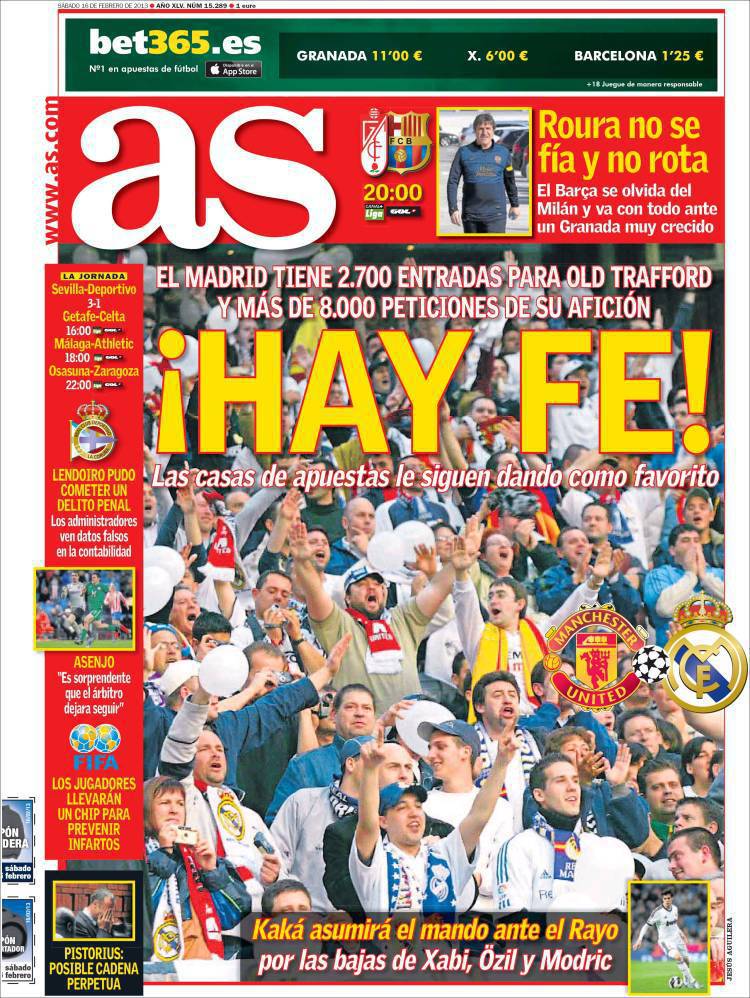 AS REAL MADRID – Ben 8000 tifosi del Real Madrid credono al colpaccio contro lo United.