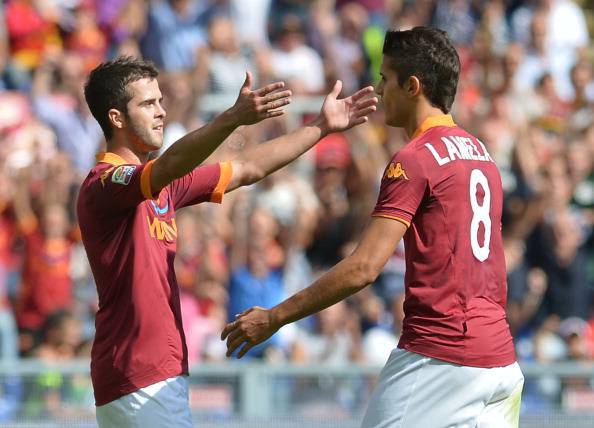 ROMA: Stekelenburg 6.5; Marquinhos 6, Burdisso 6, Piris 6; Torosidis 7, De Rossi 6,5, Pjanic 6 (68′ Bradley 6), Marquinho 6 (83′ Balzaretti S.v.), Lamela 6; Totti 7,5 (88′ Florenzi S.v.), Osvaldo 6,5. Allenatore: Aurelio Andreazzoli 6,5