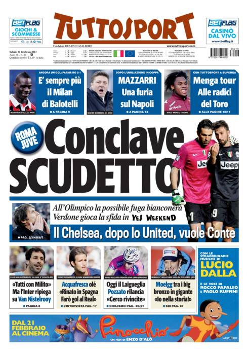TUTTOSPORT SCUDETTO – Su Tuttosport si parla del match tra Roma-Juventus in programma questa sera.