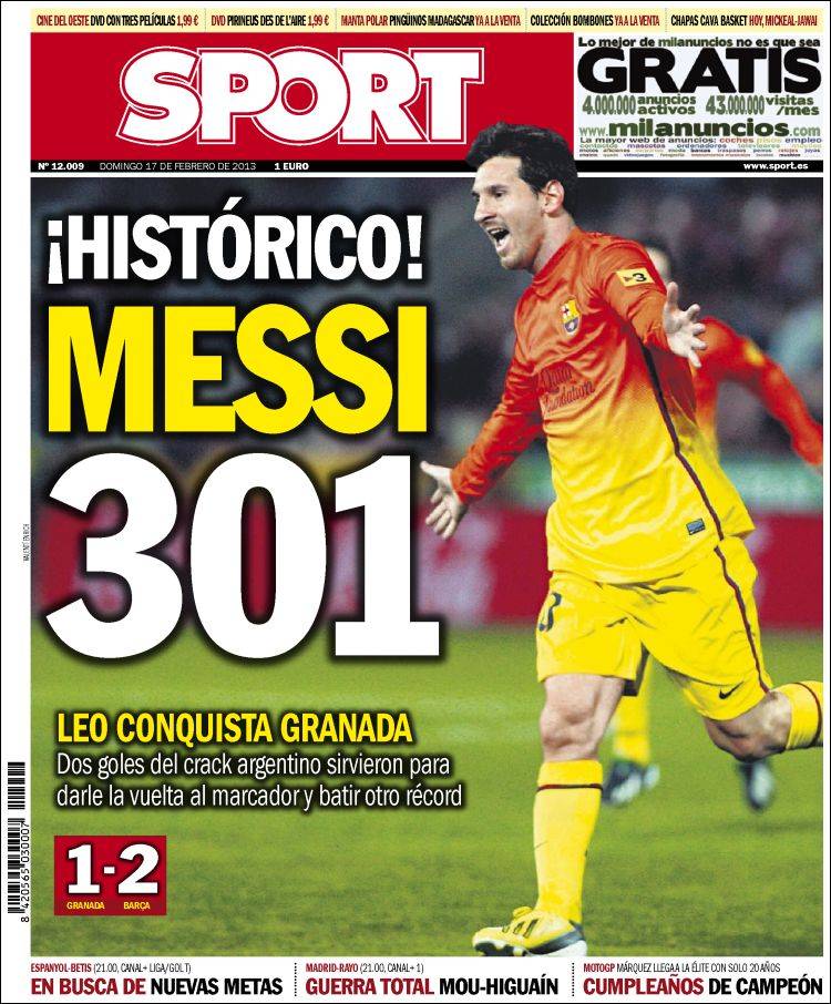 BARCELLONA MESSI – Leo Messi conquista Granada. Sotto di un gol, il Pallone d’Oro prende in mano la sua squadra e la conduce verso la vittoria firmando la sua quattordicesima doppietta della stagione e salendo a quota 301 gol.
