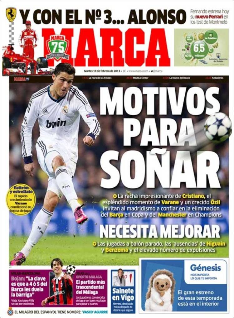 MARCA REAL MADRID – Sul quotidiano Marca si parla del Real Madrid che sogna di eliminare il Manchester United.