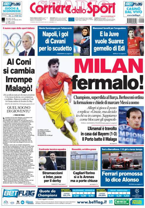 CORRIERE MILAN – Sul Corriere dello Sport si parla del Milan che deve fermare Messi.