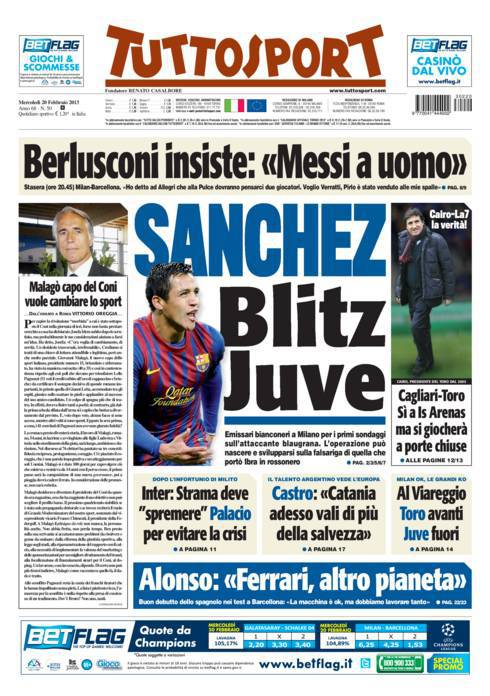 TUTTOSPORT SANCHEZ – La Juventus sta provando a prendere Alexis Sanchez dal Barcellona.