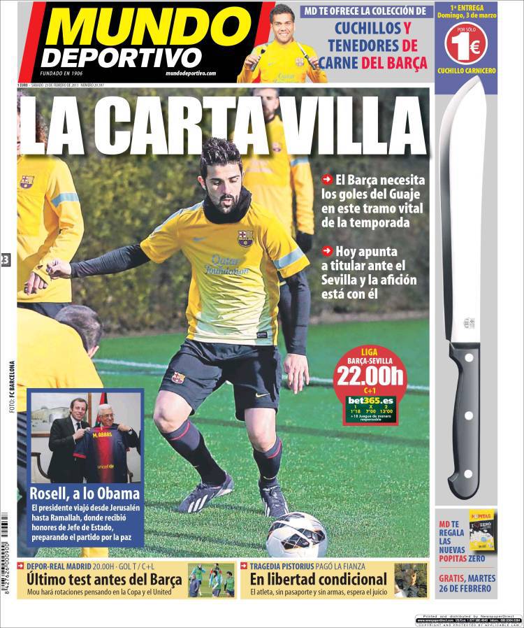 MUNDO DEPORTIVO VILLA – Sul quotidiano Mundo Deportivo si parla di Villa, attaccante spagnolo del Barcellona, che dovrebbe ritornare per questo periodo decisivo.