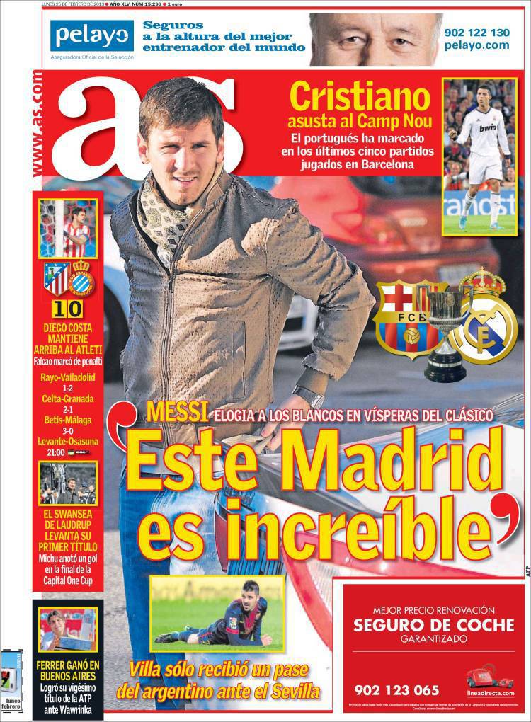 AS REAL MADRID – Sul quotidiano As si parla di Messi che elogia il Real Madrid.