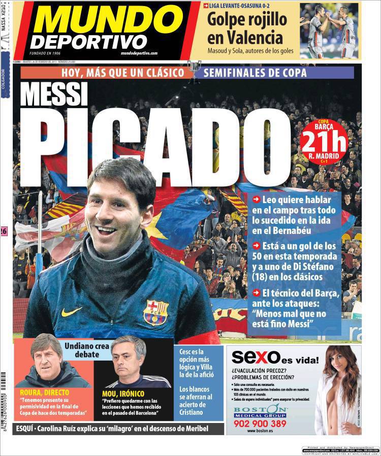 MUNDO DEPORTIVO MESSI – Sul quotidiano Mundo Deportivo si parla di Messi che vuole rispondere in campo alle polemiche tra Barcellona e Real Madrid.