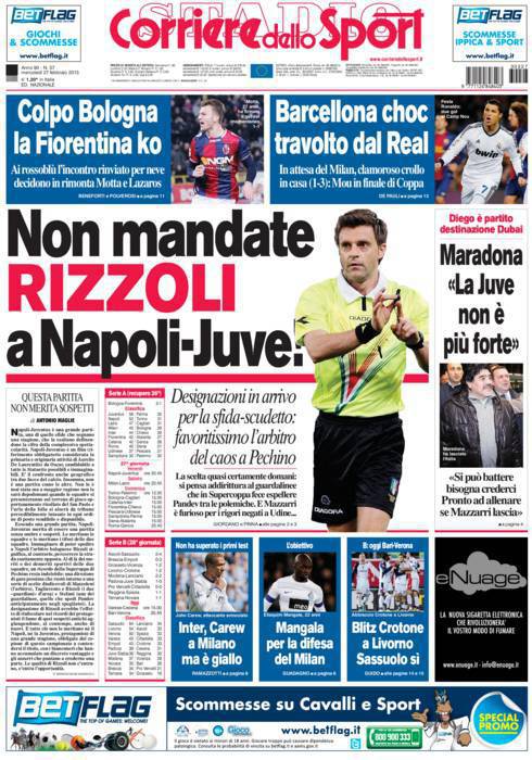 CORRIERE RIZZOLI – Oggi le designazioni arbitrali, rischio Rizzoli per Napoli-Juve.