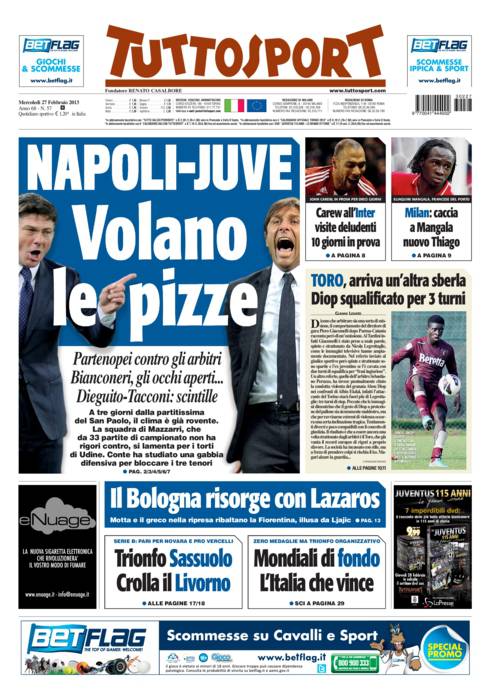 TUTTOSPORT NAPOLI JUVENTUS – Su Tuttosport si parla di Napoli e Juventus che già iniziano a scaldare i motori.