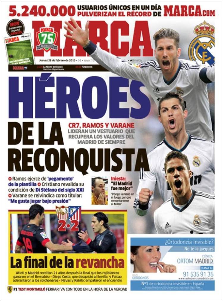 MARCA REAL MADRID – Sul quotidiano Marca si parla dei giocatori del Real Madrid che hanno conquistato la finale di Coppa del Re battendo il Barcellona.