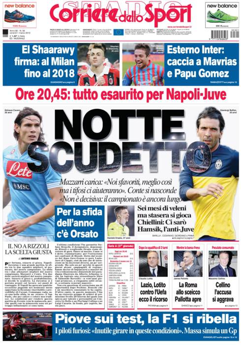CORRIERE SCUDETTO – Sul Corriere dello Sport si parla del match tra Napoli e Juventus.