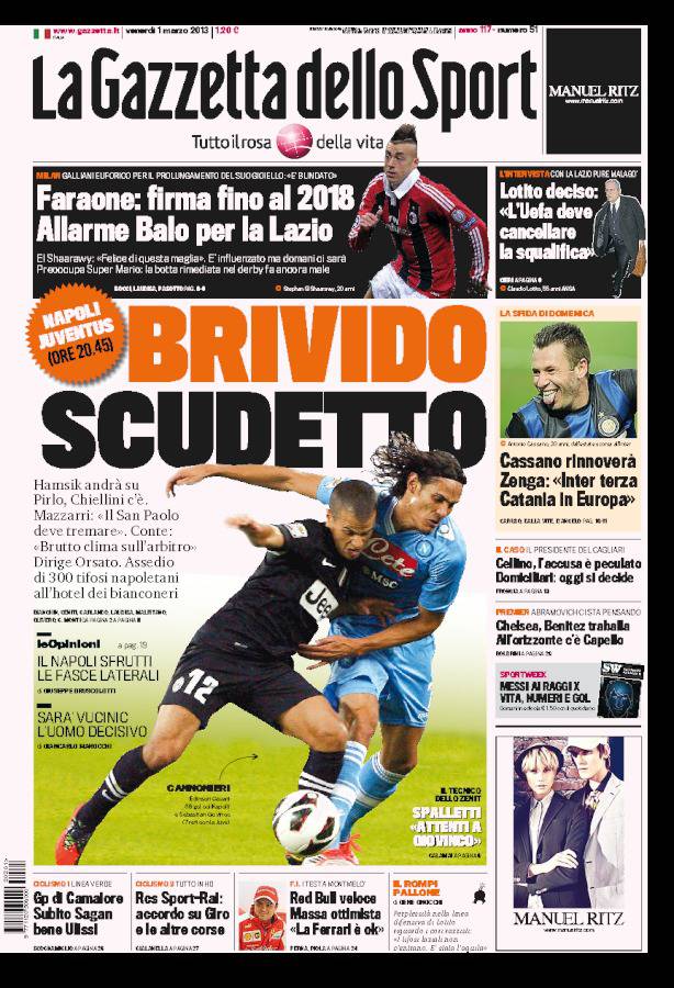 GAZZETTA SCUDETTO – E’ il giorno di Napoli-Juventus, c’è in palio una fetta di Scudetto.