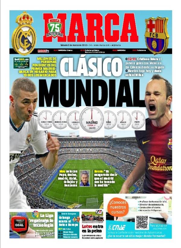 MARCA CLASICO – E’ la settimana del Clasico anche in campionato tra Real Madrid e Barcellona. Ma i punti di distacco sono 16.
