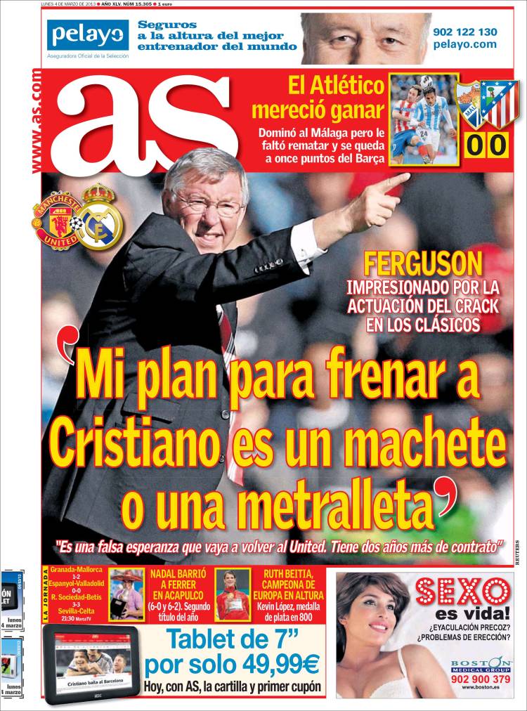 AS RONALDO – Ferguson, manager del Manchester United, preoccupato da Ronaldo che è diventato una macchina del gol.