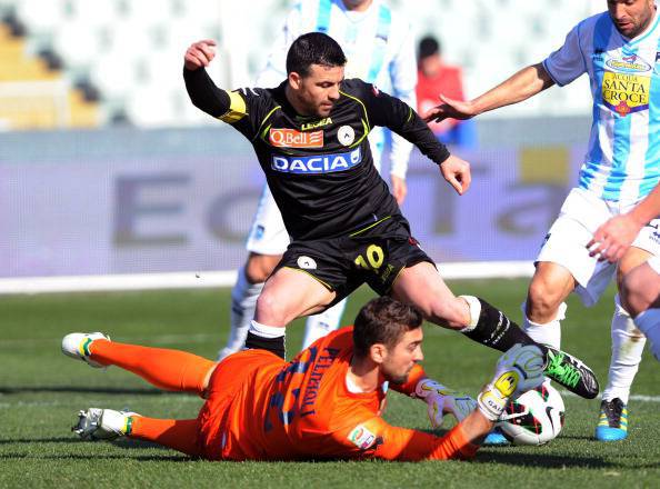 FANTACALCIO PESCARA UDINESE GAZZETTA – Allo stadio Adriatico l’Udinese batte i padroni di casa del Pescara per 1-0. Una sconfitta che ha portato nel dopo partita all’esonero di Bergodi che paga l’ennesima sconfitta alla guida degli abruzzesi sempre più invischiati in zona retrocessione. La rete della vittoria dei friulani la segna Di Natale all’8 minuto. Per l’attaccante bianconero si tratta del 150° gol in A con l’Udinese. E’ stato grazie a un assist dalla destra di Muriel che Di Natale in area di rigore ha potuto realizzare il gol partita per gli uomini di Guidolin. Ecco i voti e le pagelle de La Gazzetta dello Sport: