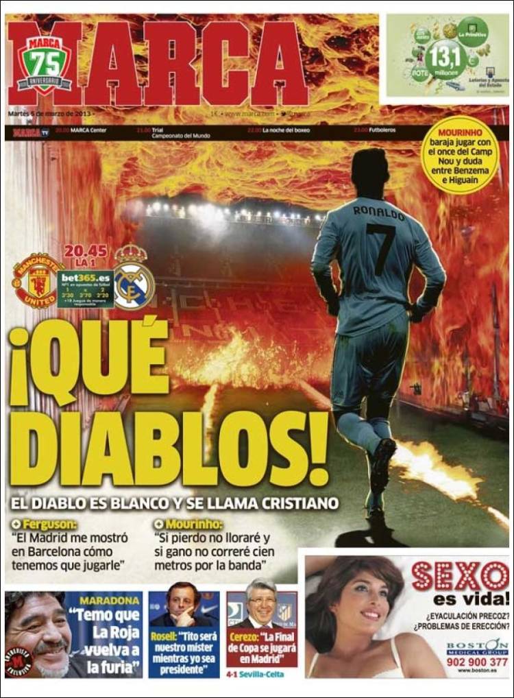 MARCA REAL MADRID – E’ il giorno di Manchester United-Real Madrid, ritorno degli ottavi di Champions League. Si riparte dall’uno a uno.