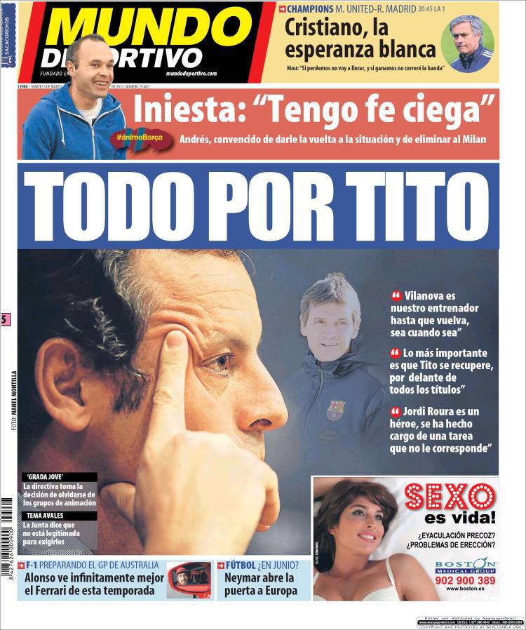 MUNDO DEPORTIVO TITO – Il presidente del Barcellona Rosell ha confermato la fiducia al gruppo di lavoro di Vilanova.