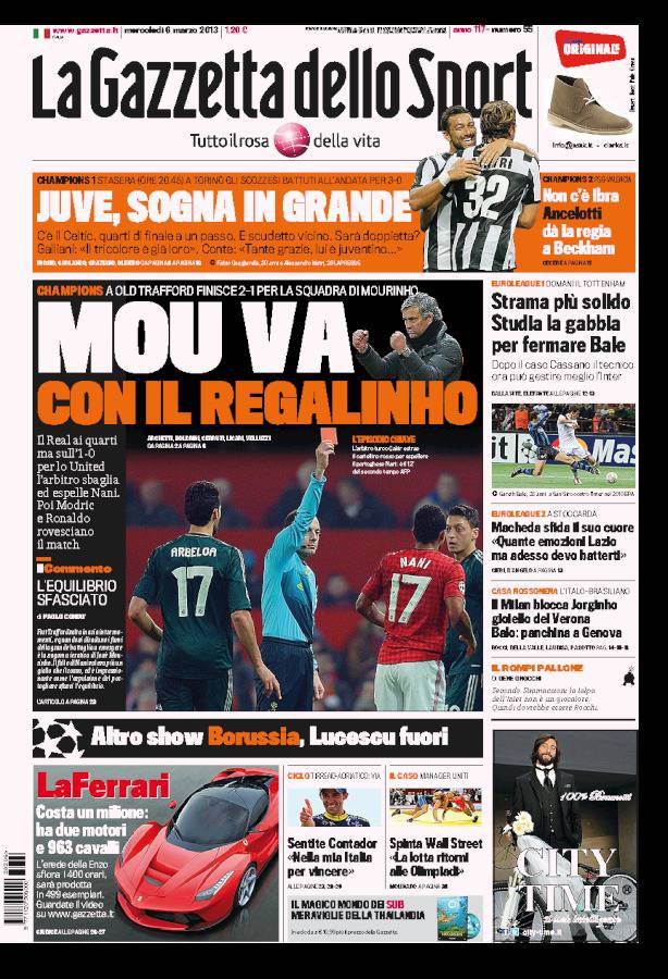 GAZZETTA MOURINHO – Il Real Madrid batte due a uno il Manchester United e vola ai quarti.
