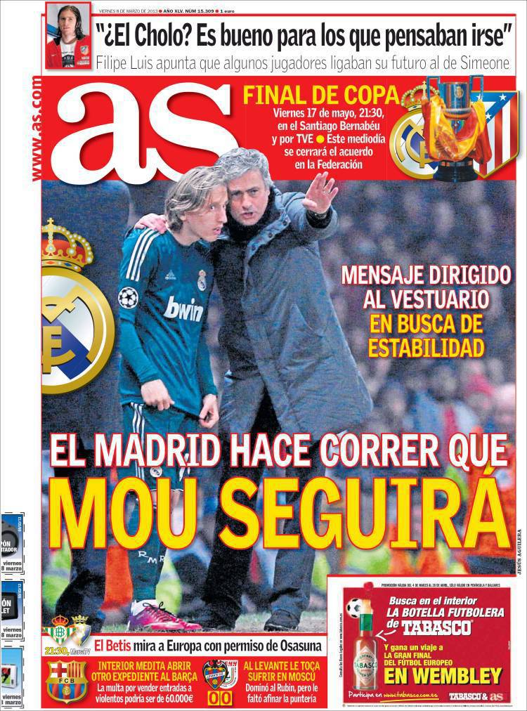AS REAL MADRID – Sul quotidiano As si parla del Real Madrid che vuole seguire Mourinho.