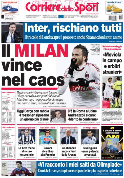 CORRIERE MILAN – Sul Corriere dello Sport si parla della vittoria del Milan contro il Genoa tra le tante polemiche arbitrali.