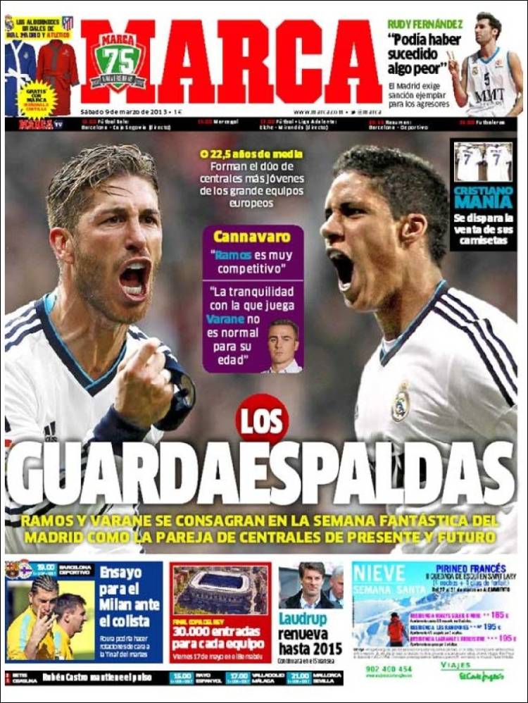 MARCA REAL MADRID – Sul quotidiano Marca si parla di Varane e Ramos, i due guardaspalla del Real Madrid.