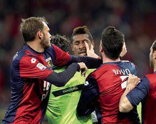 GENOA MILAN PROVA TV BOVO CONSTANT – Cesare Bovo, nella sua lunga carriera in Serie A, ha sempre dimostrato un carattere esemplare e da vero combattente. L’eccesso di foga messo in campo venerdì sera nella sfida persa contro il Milan, potrebbe però macchiare la sua condotta portata avanti nel corso di una gran bella storia calcistica. Oltre infatti al fallaccio fatto da dietro a Kevin Constant, suo ex compagno l’anno scorso proprio al Genoa, il difensore romano ex Palermo, si è messo in mostra con un brutto gesto che potrebbe costargli qualche giornata di squalifica. Dopo l’entrata sconsiderata, Bovo, ha infatti messo le mani in faccia al mancino del Milan, mettendogli addirittura un dito nell’occhio. Vi riproponiamo la foto che potrebbe valere come prova TV per il giocatore rossoblu: