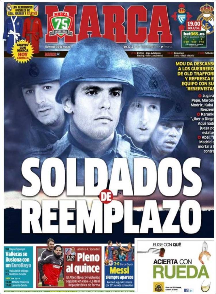 REAL MADRID MOURINHO – Josè Mourinho sceglie di far riposare i guerrieri dell’Old Trafford e si affida alle “seconde linee”. Cristiano Ronaldo, reduce dall’influenza, è partito con la squadra ma partirà dalla panchina mentre è rimasto a Madrid Sergio Ramos. Contro il Celta Vigo giocheranno Pepe, Marcelo, Modric e Kakà.