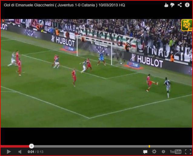 VIDEO – La Juventus ha superato il Catania per 1 a 0 grazie al gol di Giaccherini. L’azione è iniziata da un cross di Paul Pogba, smanacciato da Andujar, con palla che è rimasta in area e nella mischia è arrivato come un treno Giaccherini che ha poi riuscito ad insaccare.