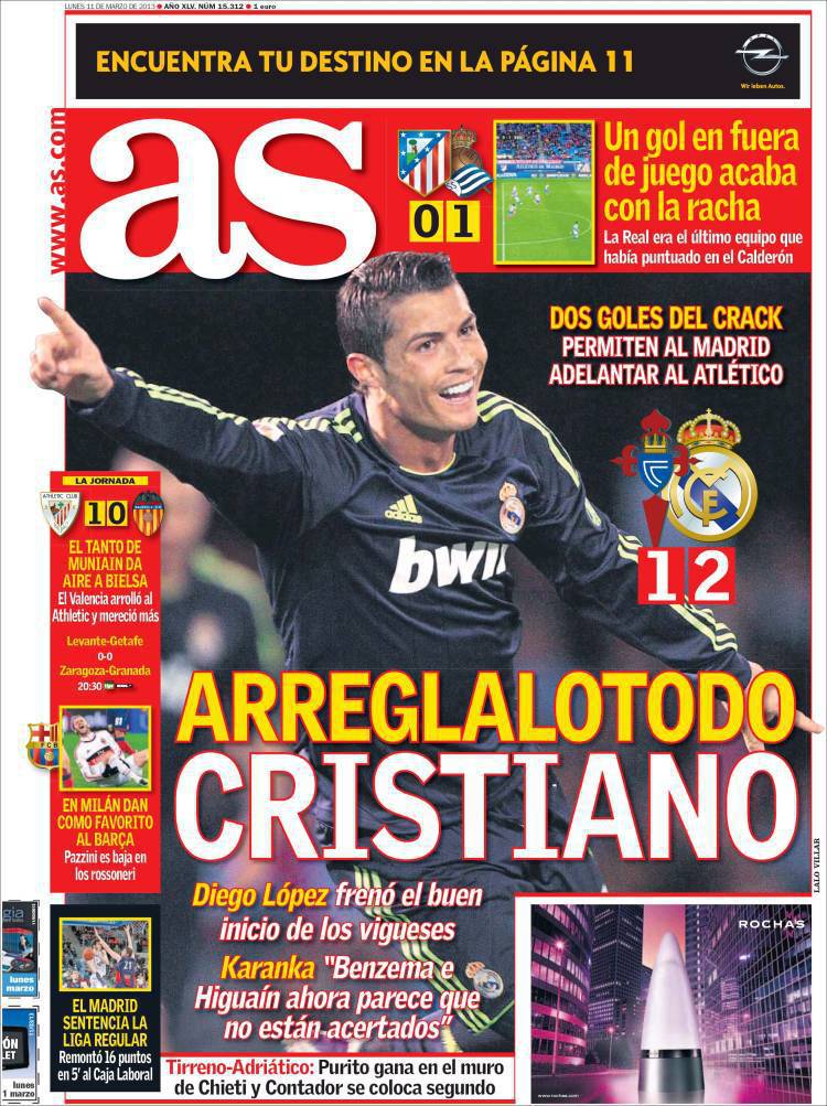 AS RONALDO – Il Real Madrid grazie a doppio Ronaldo agguanta il secondo posto approfittando dello stop dell’Atletico Madrid.