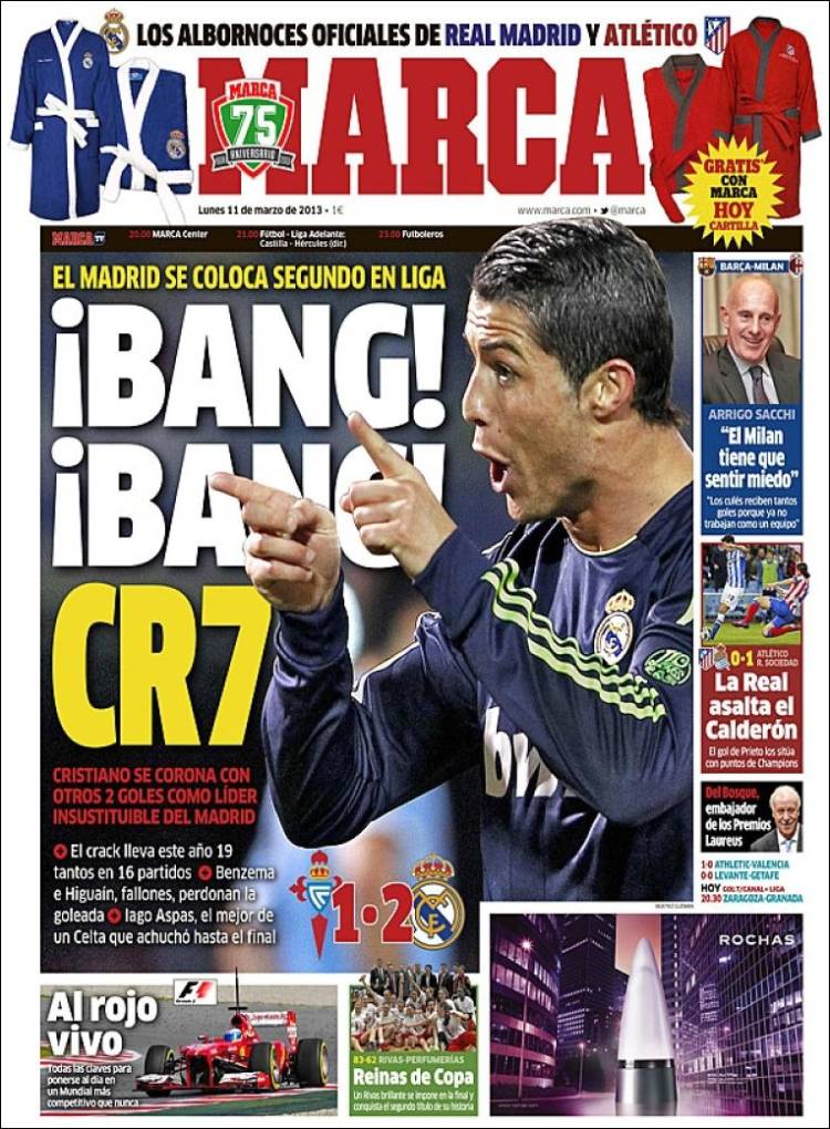 MARCA RONALDO – Sul quotidiano Marca si parla del Real Madrid che vince due a uno contro il Celta.