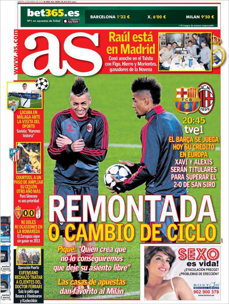 AS BARCELLONA – L’altro quotidiano spagnolo As parla di rimonta o fine del ciclo a Barcellona.