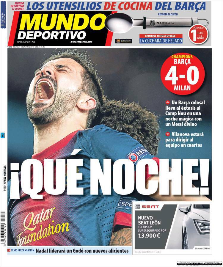 MUNDO DEPORTIVO BARCELLONA – Sul quotidiano Mundo Deportivo si parla del Barcellona che regala una notte stupenda ai propri tifosi contro il Milan.
