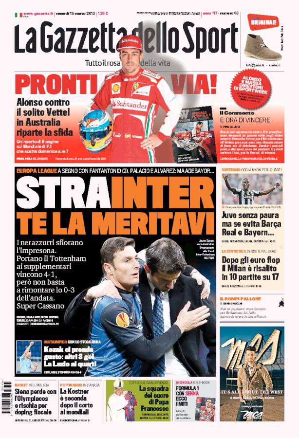 GAZZETTA INTER – Sulla Gazzetta dello Sport si parla dell’Inter che vince quattro a uno contro il Tottenham e sfiora l’impresa.