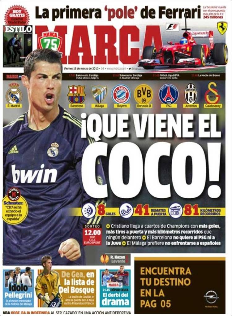 MARCA RONALDO – Sul quotidiano Marca si parla di Ronaldo che aspetta il sorteggio di Champions League.