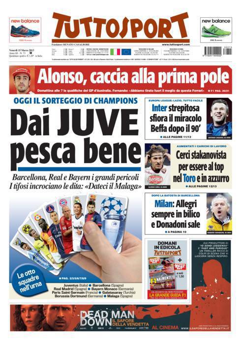 TUTTOSPORT JUVENTUS – Su Tuttosport si parla della Juventus che oggi capirà chi sarà l’avversaria ai quarti di Champions.