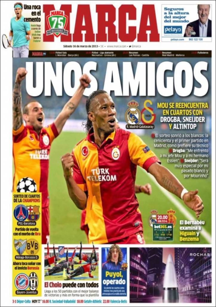 MARCA REAL MADRID – Il Real Madrid di Mourinho se la vedrà con il Galatasaray degli “amici” Drogba, Sneijder e Altintop.