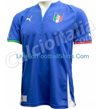 NAZIONALE CONFEDERATION CUP FOTO – Grazie al secondo posto guadagnato nell’Europeo giocato in estate in Polonia ed Ucraina, la nazionale italiana di calcio disputerà la Confederation Cup, competizione di preparazione al mondiale 2014 che si disputerà in estate in Brasile. Tra pochi giorni la Puma e la FIGC presenteranno ufficialmente la nuova divisa che la squadra azzurra indosserà alla Confederation Cup, ma su internet è già circolata la foto che ritrae la nuova divisa ufficiale. Particolare il dettaglio del colletto, totalmente differente rispetto all’ultima divisa. Ecco la foto tratta da liveforfootballshirts.com:
