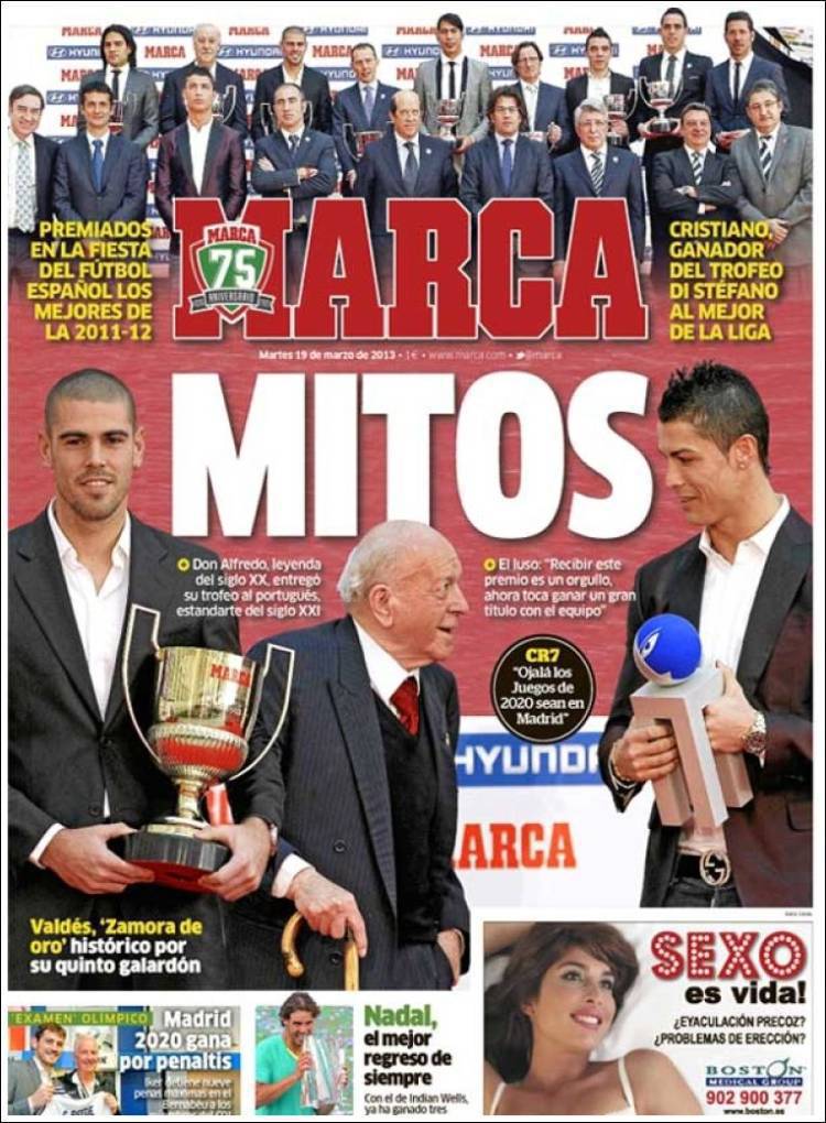 MARCA LIGA – Sul quotidiano Marca si parla di Valdes e Ronaldo protagonisti della notte degli Oscar del calcio spagnolo.