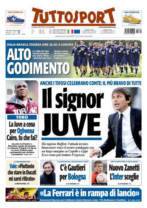 TUTTOSPORT JUVENTUS – Su Tuttosport si parla della Juventus e in particolare di Conte.