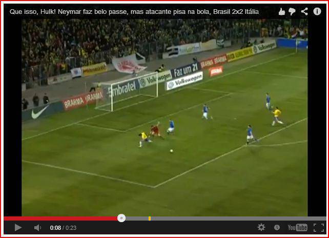 VIDEO BRASILE ITALIA – Direttamente su Youtube è stato pubblicato un filmato riguardante il match amichevole fra Brasile e Italia di ieri con protagonista in negativo il verdeoro Hulk. L’attaccante dello Zenit, lanciato a rete contro Buffon, tenta una finta ma incespica e il risultato è di quelli da comiche…