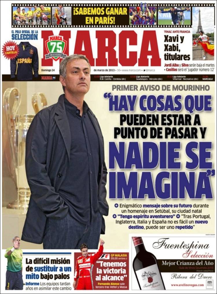 MOURINHO REAL MADRID – Durante un tributo organizzato da Setubal, città del Portogallo dove Josè Mourinho è nato che gli ha dedicato una mostra per i suoi 50 anni, l’attuale tecnico del Real Madrid, lancia un messaggio enigmatico sul suo futuro: “Ci sono cose che stanno per succedere e nessuno può immaginare”.