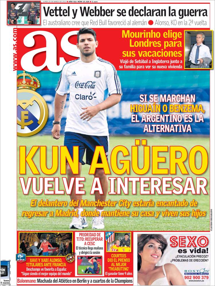 AS AGUERO – Sul quotidiano As si parla di Aguero che è ancora interessato a tornare a Madrid sponda Real.
