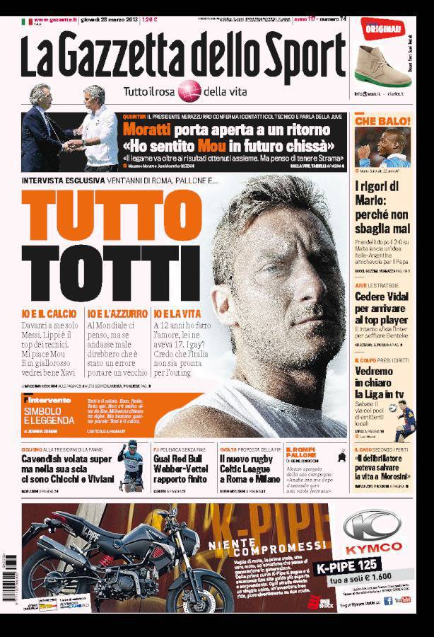 GAZZETTA TOTTI – Sulla Gazzetta dello Sport intervista a Totti a 20 anni dal suo esordio.