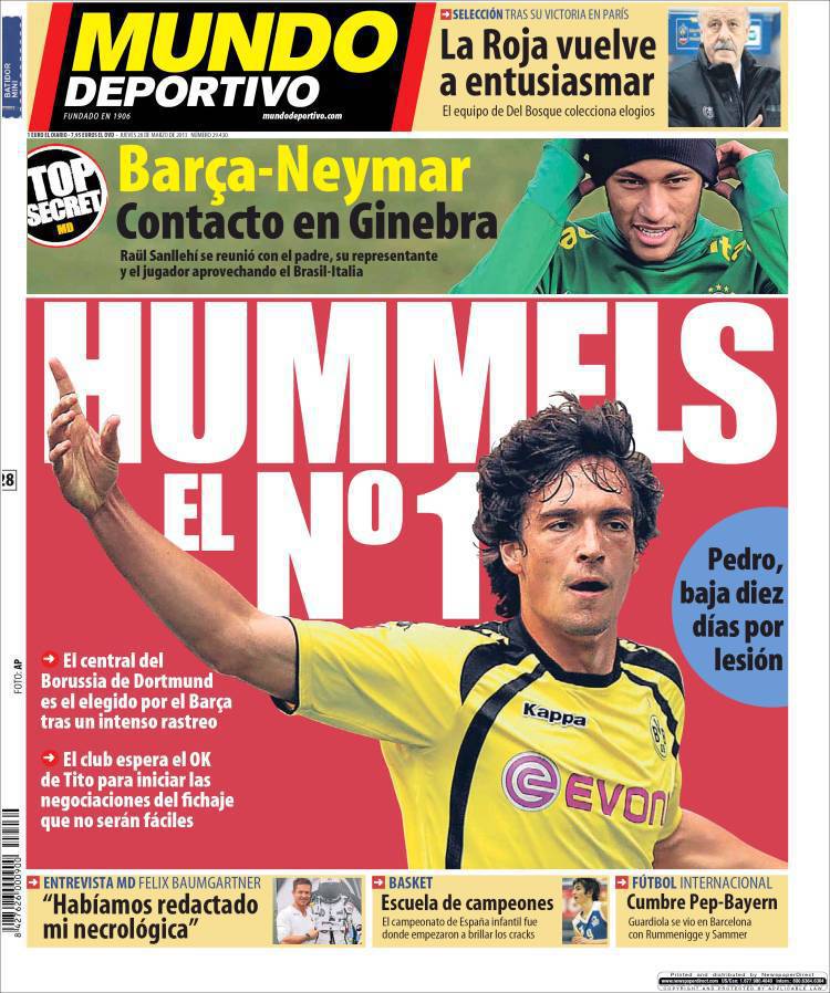 MUNDO DEPORTIVO HUMMELS – Sul quotidiano Mundo Deportivo si parla di Hummels obiettivo numero uno per la difesa del Barcellona.