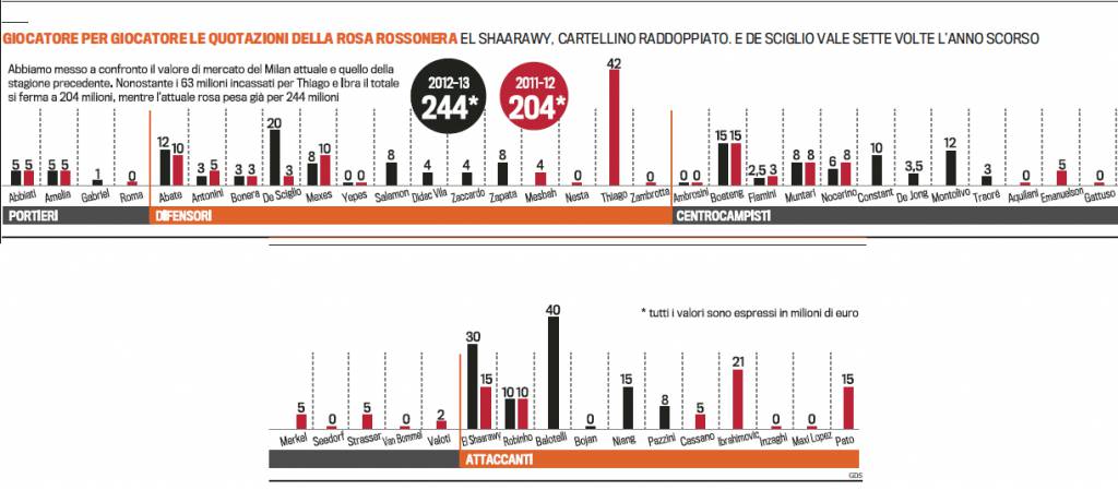 CALCIOMERCATO MILAN ROSA ATTUALE GALLIANI – Abbiamo ancora in mente la grande contestazione dei tifosi del Milan per le cessioni importanti di Thiago Silva e Zlatan Ibrahimovic, entrambi sono stati ceduti in estate al Psg. Sembrava l’inizio di una stagione davvero orribile per il Milan e invece le cose sono cambiate completamente perché Allegri ha saputo reagire alle difficoltà presentando un Milan giovane e pimpante. Oggi la rosa del Milan ha un valore economico decisamente più importante rispetto a quella dell’anno scorso. Perché El Shaarawy ha raddoppiato il proprio valore di mercato perché De Sciglio oggi vale sette volte il prezzo dello scorso anno. Galliani ci ha visto giusto un’altra volta.