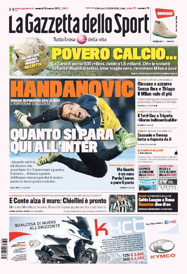 GAZZETTA HANDANOVIC – Sulla Gazzetta dello Sport intervista esclusiva a Samir Handanovic, portiere dell’Inter.