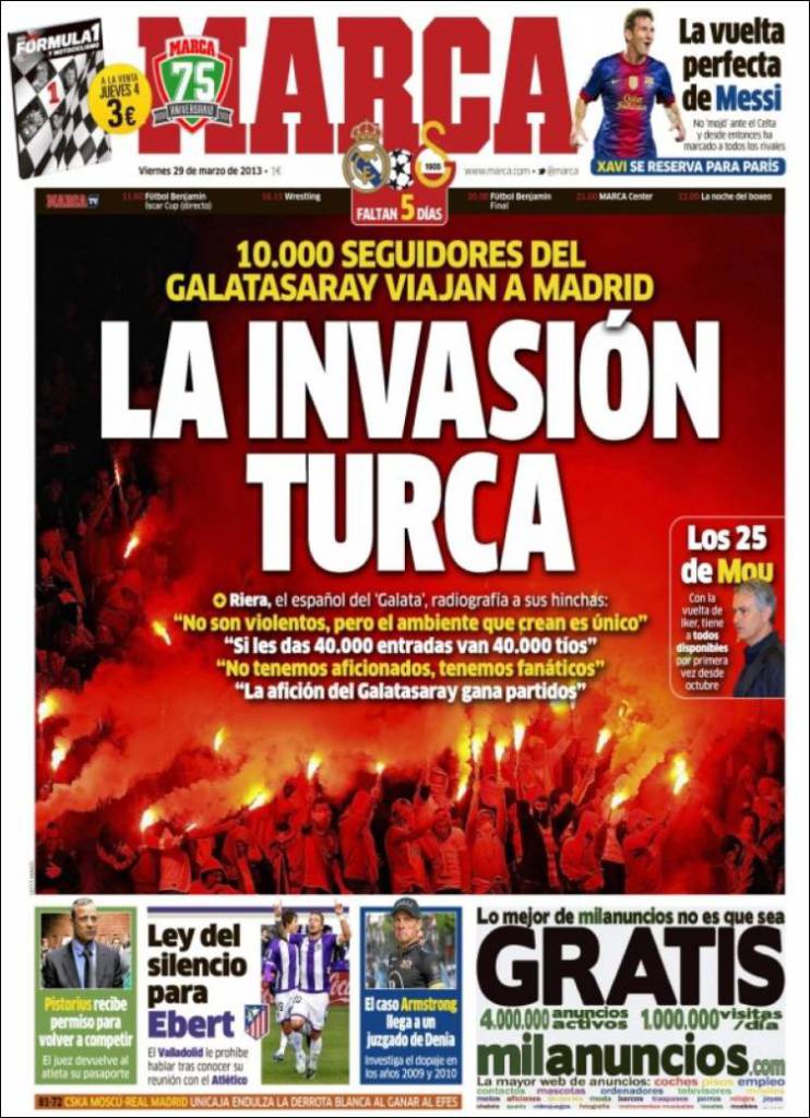 MARCA GALATASARAY – Dieci mila turchi seguiranno il Galatasaray a Madrid per l’andata dei quarti di Champions League.
