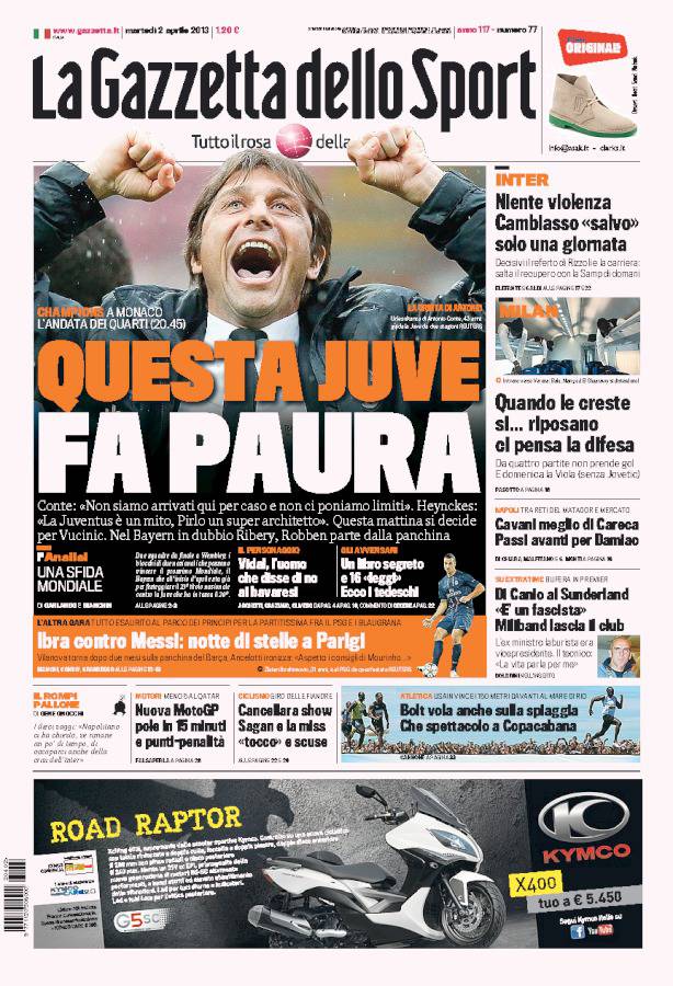 GAZZETTA JUVENTUS – Sulla Gazzetta dello Sport si parla del match tra Bayern Monaco e Juventus nell’andata dei quarti di finale di Champions.