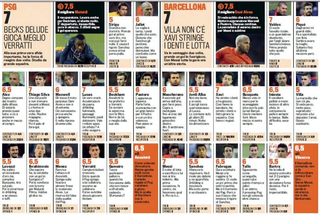 PSG-BARCELLONA VOTI PAGELLE GAZZETTA SPORT – Poco più in basso troverete i voti e le pagelle Gazzetta dello Sport di PSG-Barcellona, sfida giocatasi ieri sera al Parco dei Principi, valevole per l’andata dei quarti di finale di Champions League, e conclusasi con il risultato di 2 a 2, parità. Migliore in assoluto dell’incontro è Dani Alves, la cui gara è una corsa continua, passaggi al bacio e spina costante nel fianco della retroguardia francese. Bene Ibrahimovic, anche se il gol è in fuorigioco, così come il solito Messi, che esce malconcio ma che ha il tempo di segnare l’ennesima rete in carriera.