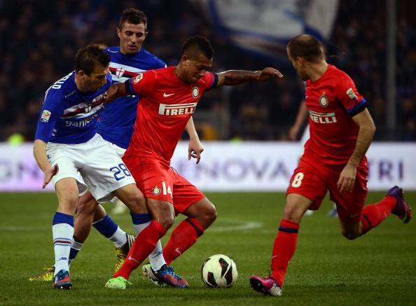 SAMPDORIA INTER 0-2 VOTI PAGELLE CALCIOMERCATONEWS.COM – Una squadra cinica e cattiva quella di Andrea Stramaccioni che ha la meglio nella sfida contro la Sampdoria di oggi pomeriggio, gara valevole per il recupero della 29^ giornata del campionato di Serie A. Una grande vittoria quella dei nerazzurri che si riportano così a meno 7 dalla zona Champions League, riuscendo ad invertire la rotta subito dopo la brutta debacle interna contro la Juventus. Leggiamo adesso i voti e le pagelle della redazione di Calciomercatonews.com per la gara appena conclusasi: