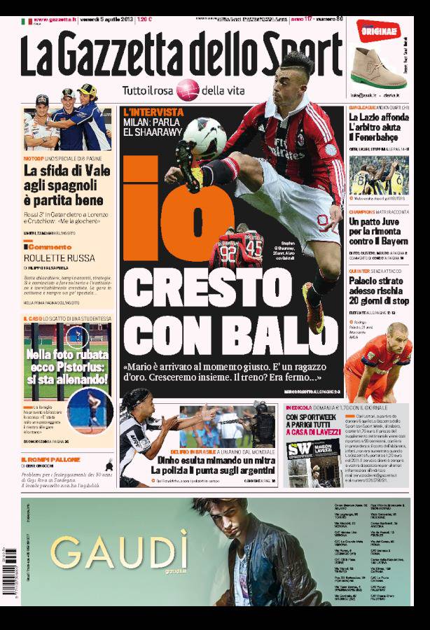 GAZZETTA EL SHAARAWY – Sulla Gazzetta dello Sport, intervista esclusiva con El Shaarawy.